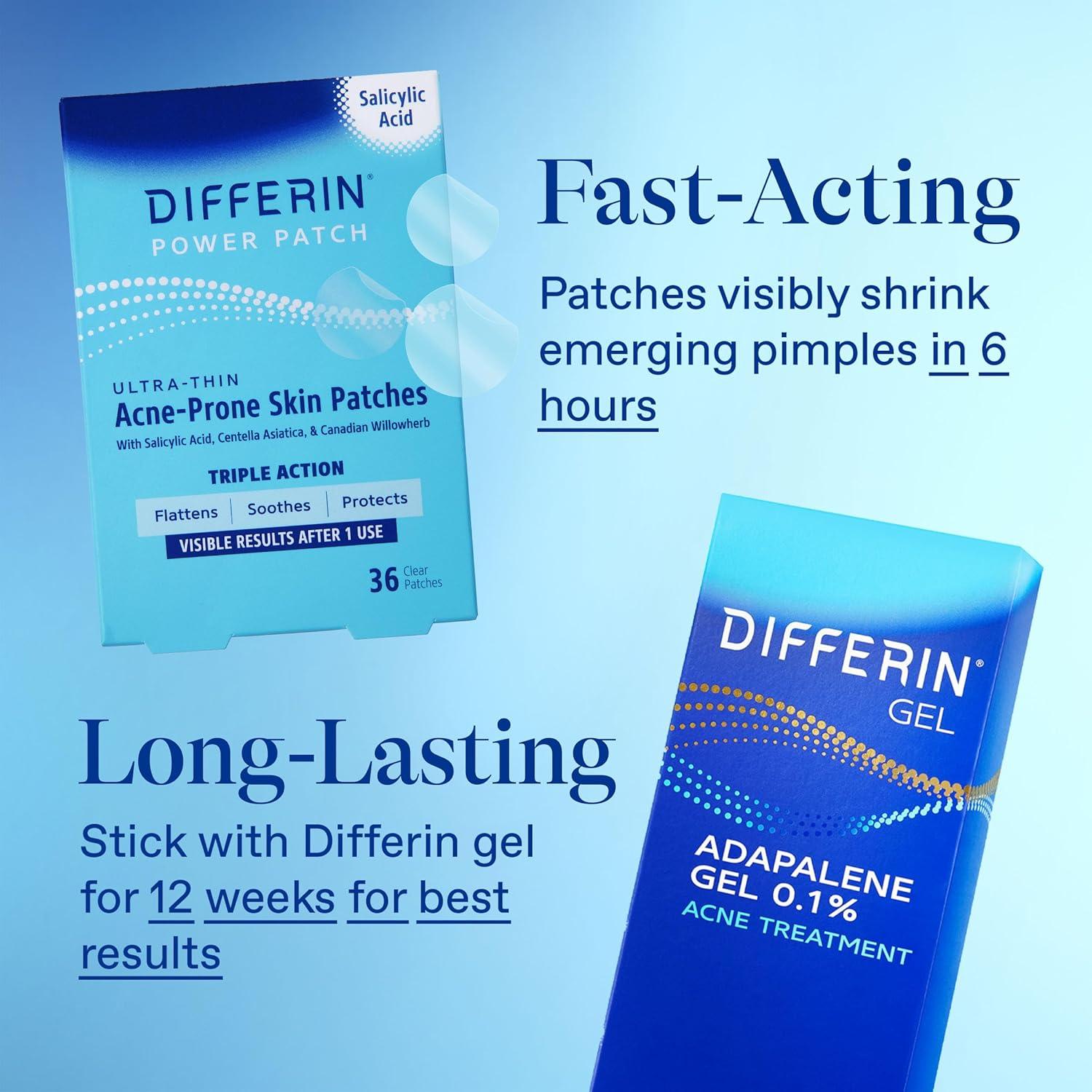 FAST-ACTING & LONG-LASTING COMBINATION: Kit includes Acne-Prone Skin Patches 36 count to target pop-up pimples & Rx strength retinoid Adapalene Gel 15g tube (30-day supply) to treat and prevent acne.